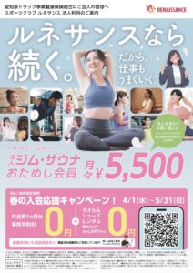 契約中のスポーツクラブ ルネサンスより春キャンペーンのチラシを頂きましたのでご紹介させて頂きます。