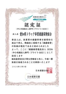 愛知県トラック事業健康保険組合は、2026年3月9日「健康経営優良法人2026 中小規模法人部門(ブライト500)」に5年連続認定されましたことをご報告させて頂きます。